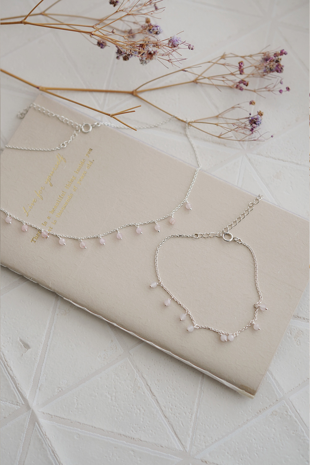 BLUMA粉晶巴黎女人925純銀手鍊項鍊