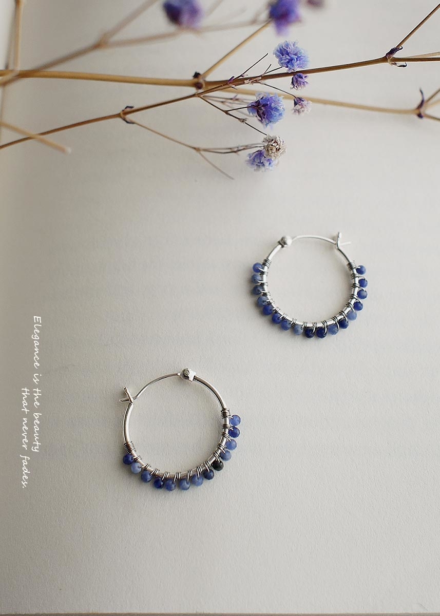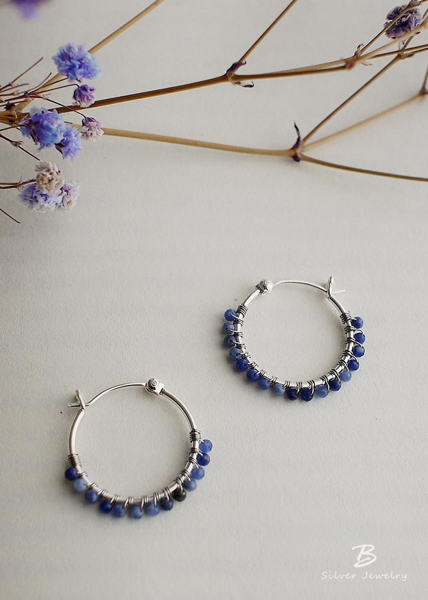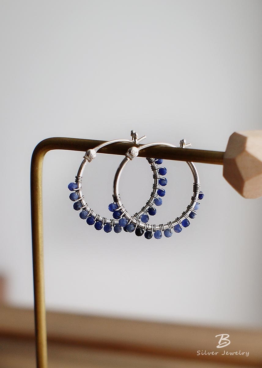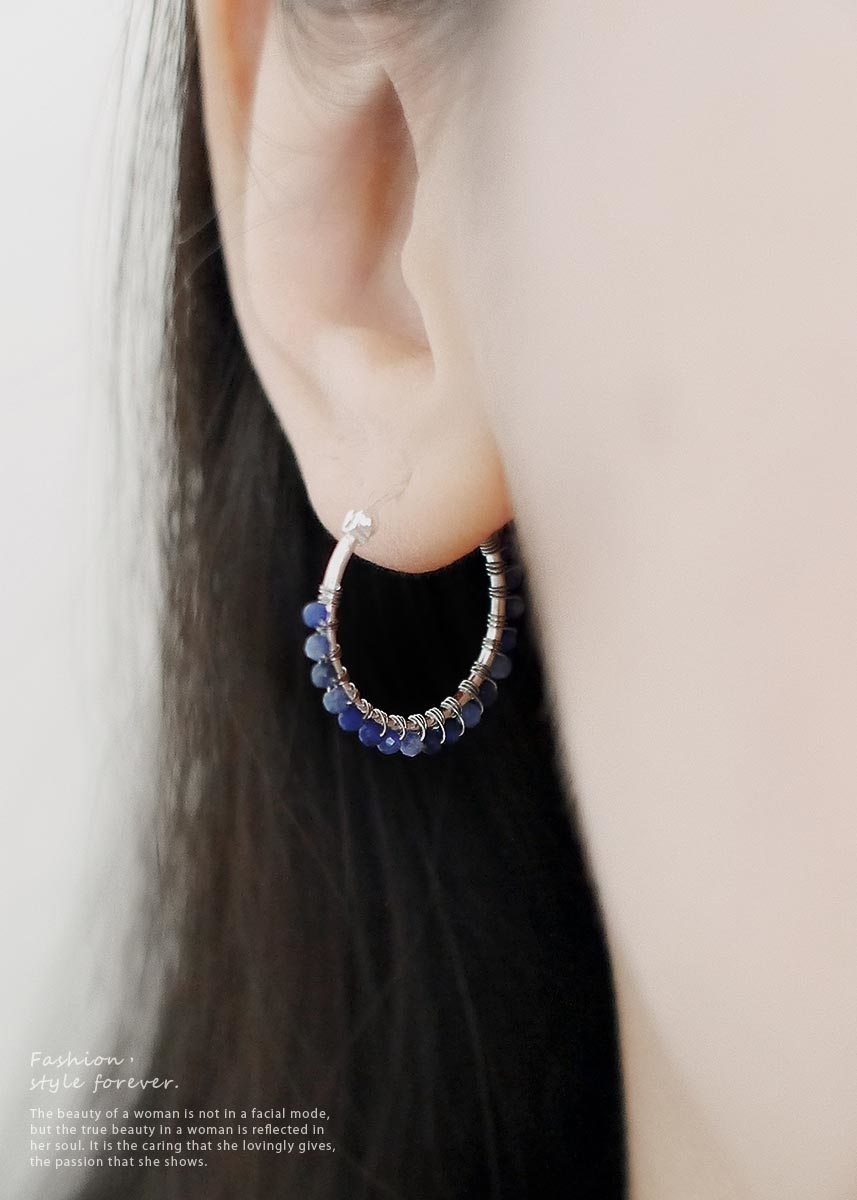 天然藍寶石,以925純銀圈排列成經典的圓圈造型,展現優雅美感。