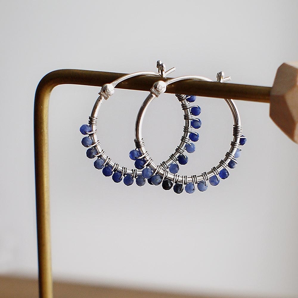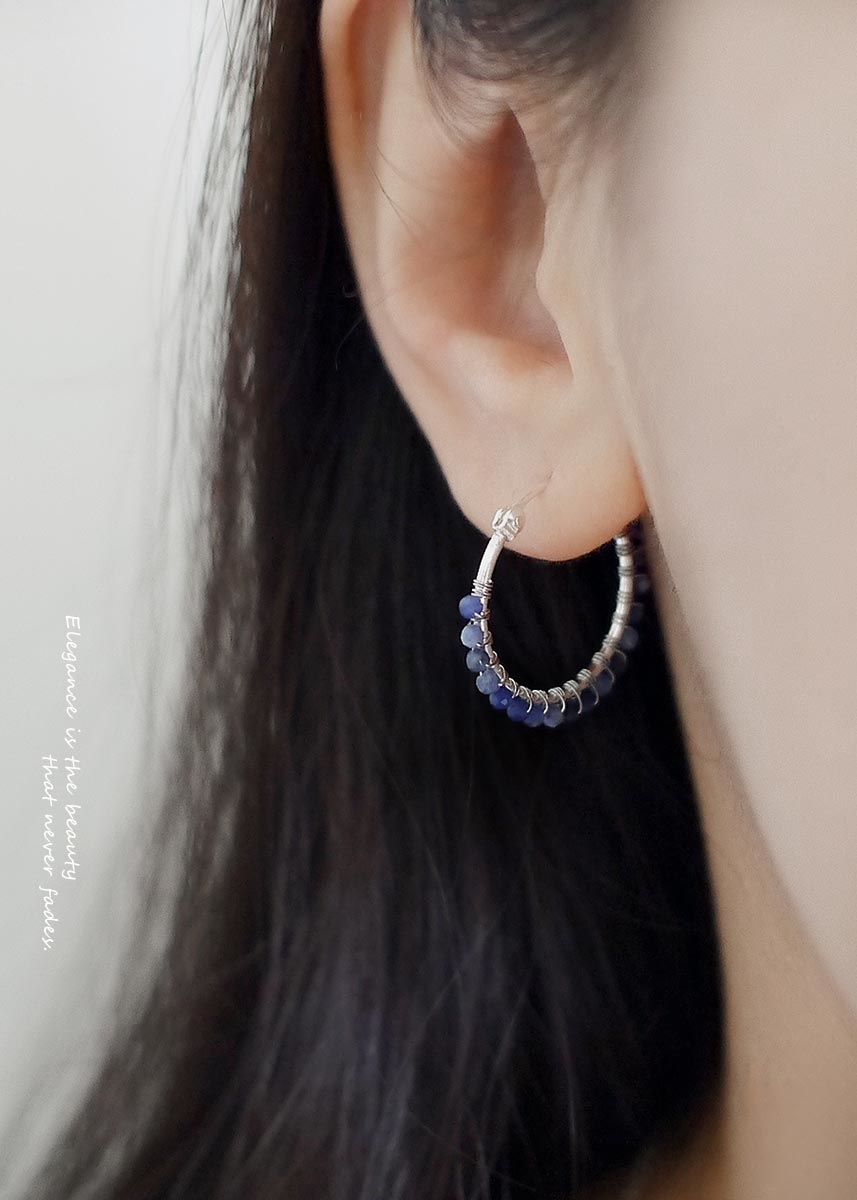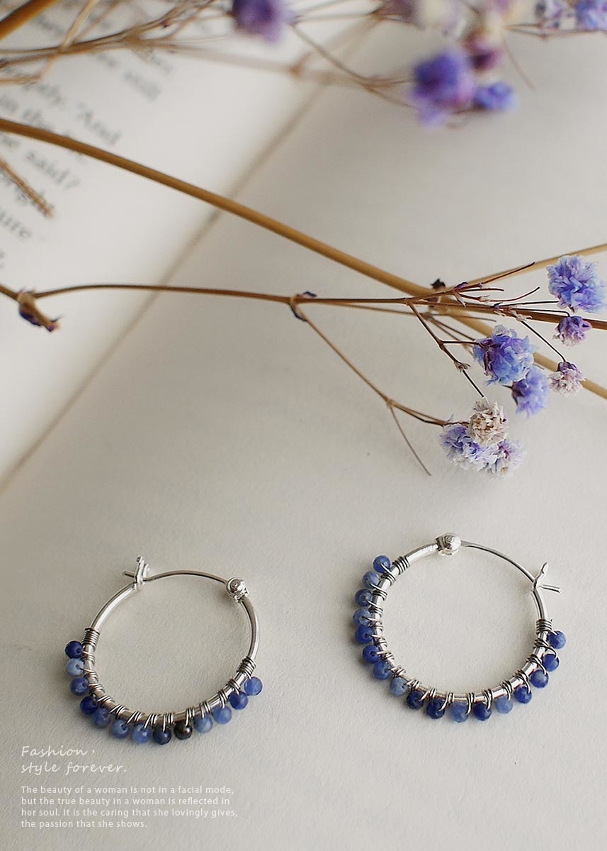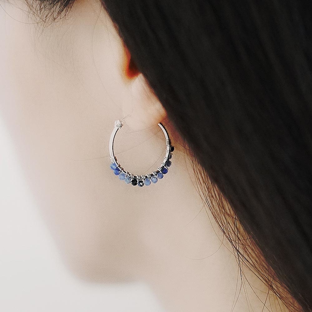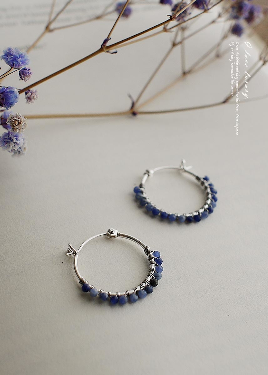 天然藍寶石,以925純銀圈排列成經典的圓圈造型,展現優雅美感。