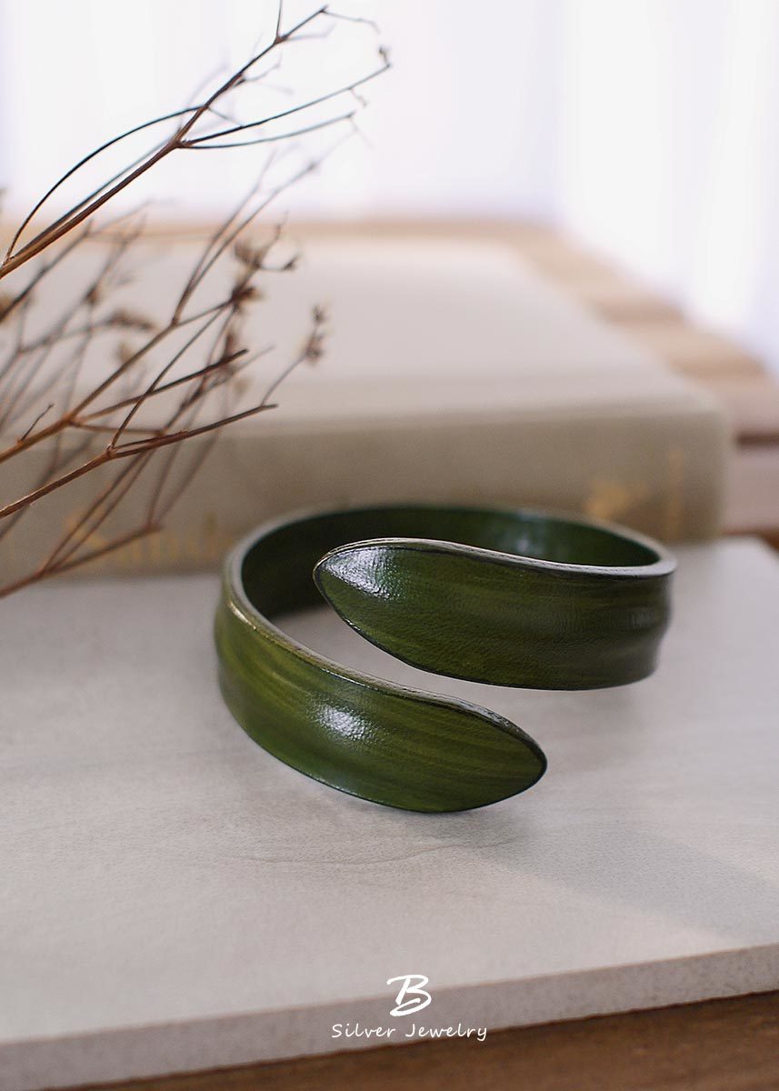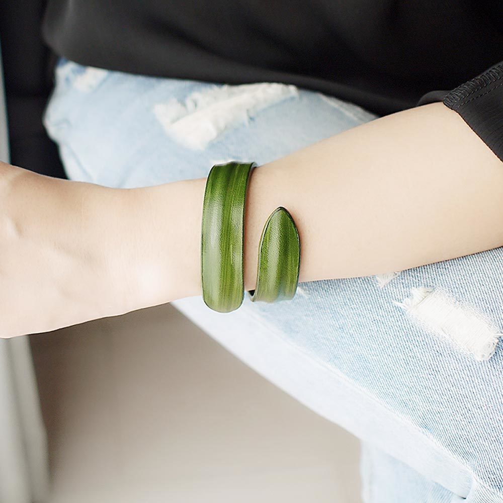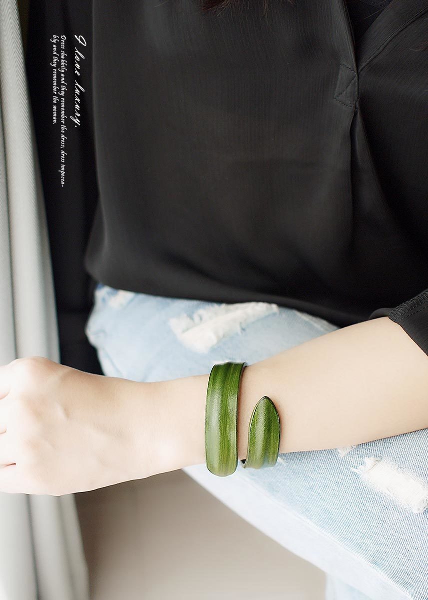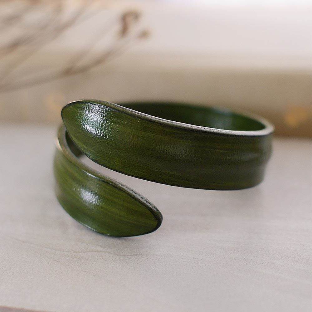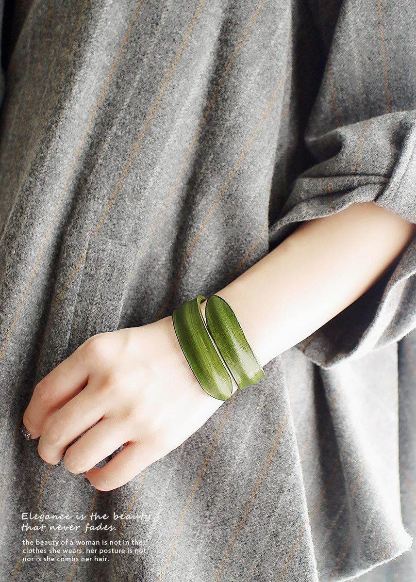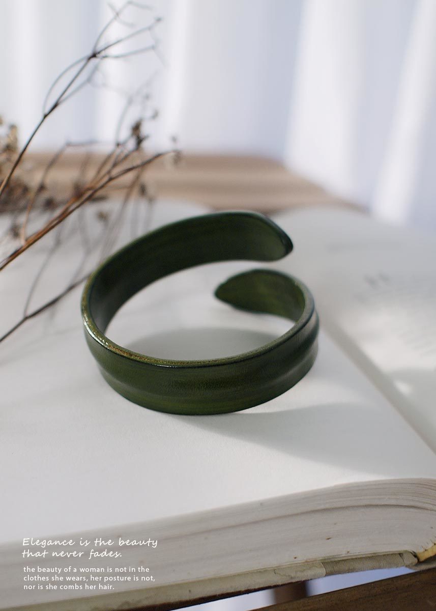 BLUMA極簡手染牛皮手環(橄欖綠色)