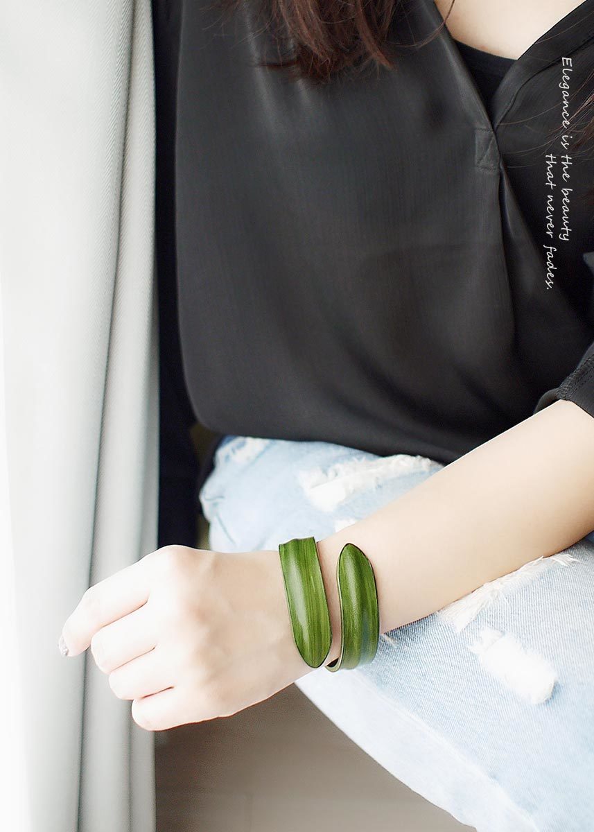 內層以鋁線為框架,輕巧不厚重,很容易彎折佩戴,佩戴後請將開口壓緊貼合手腕。