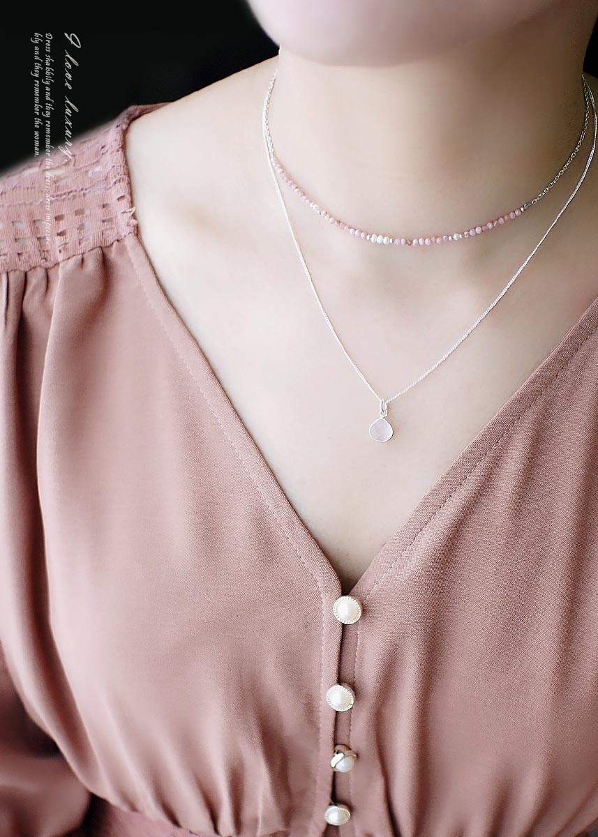 此款圖照搭配玫瑰石珍珠純銀項鍊,可自行配戴一長一短,呈現雙層項鍊的效果,玫瑰石珍珠項鍊請至另一賣場選購。