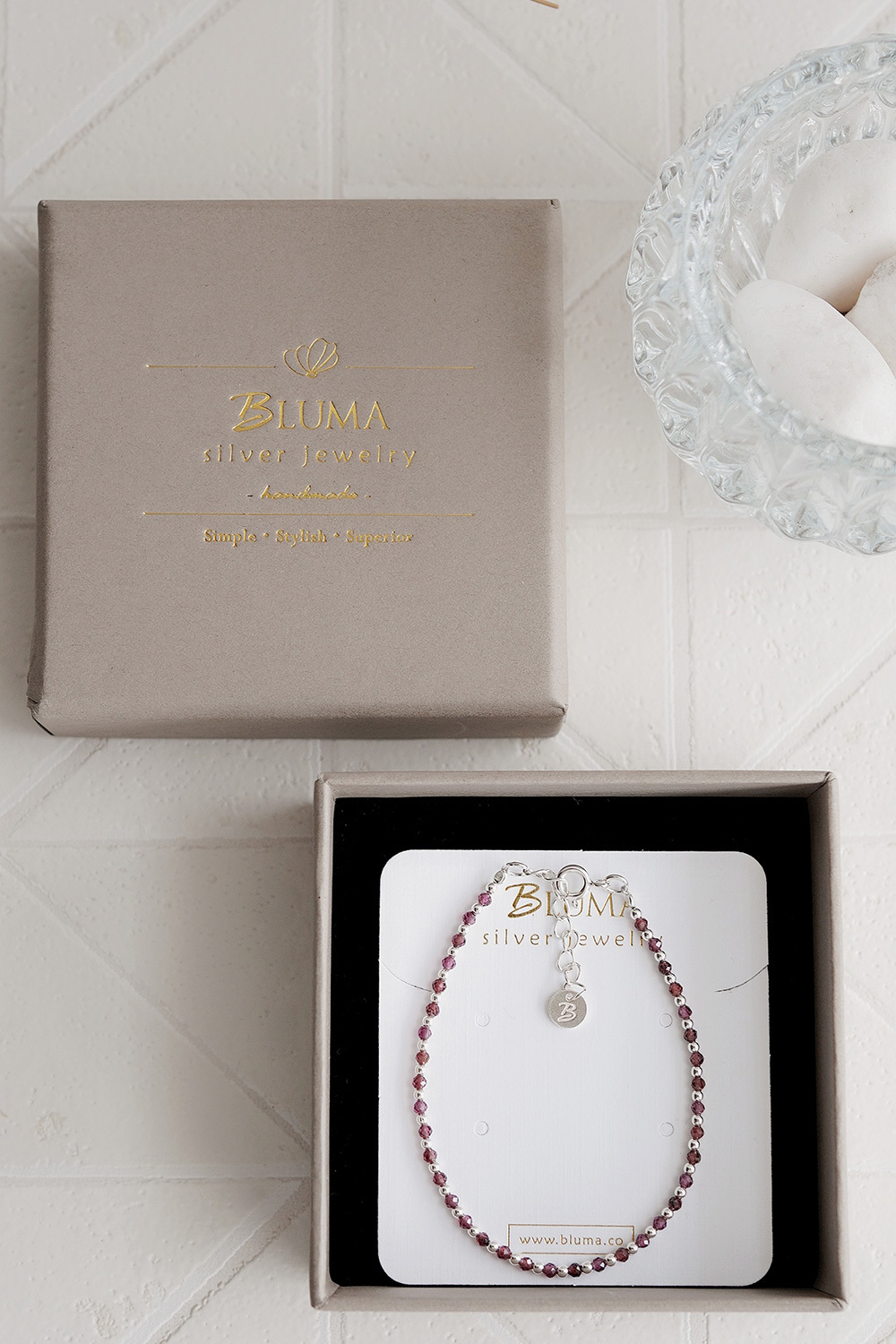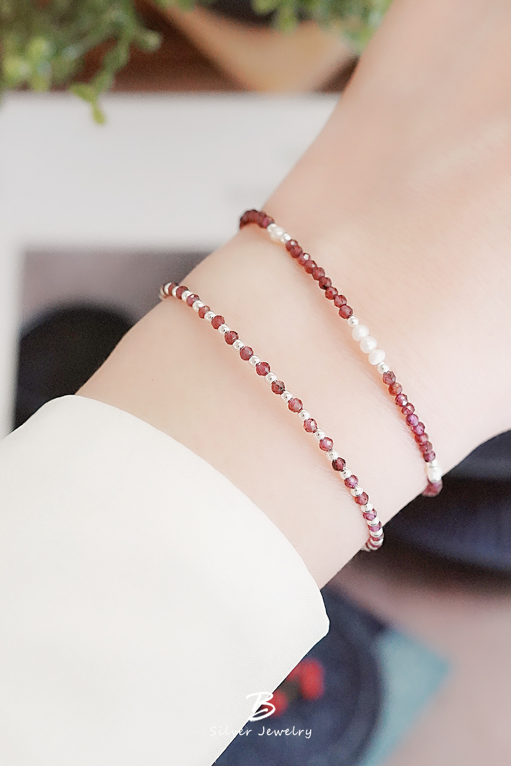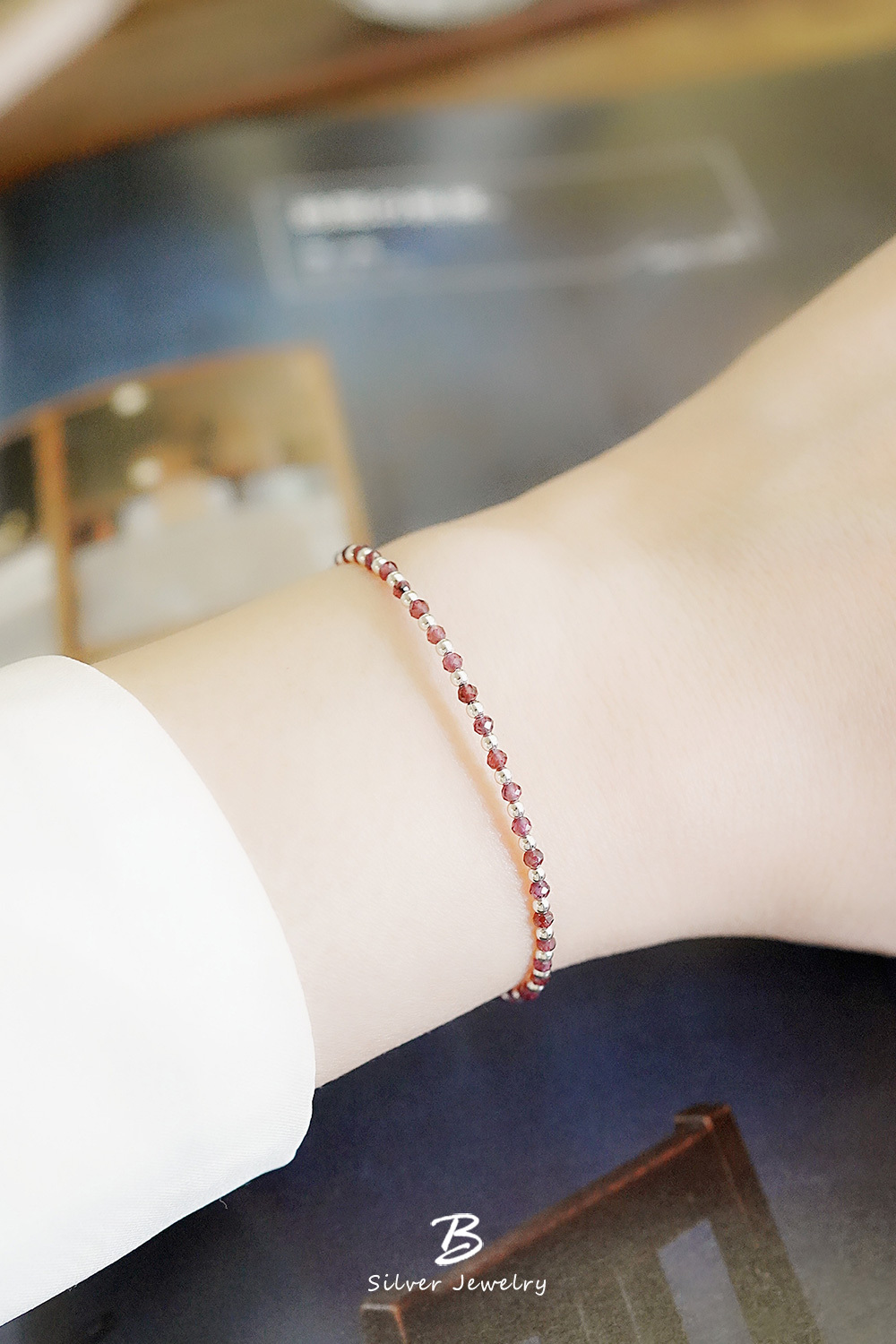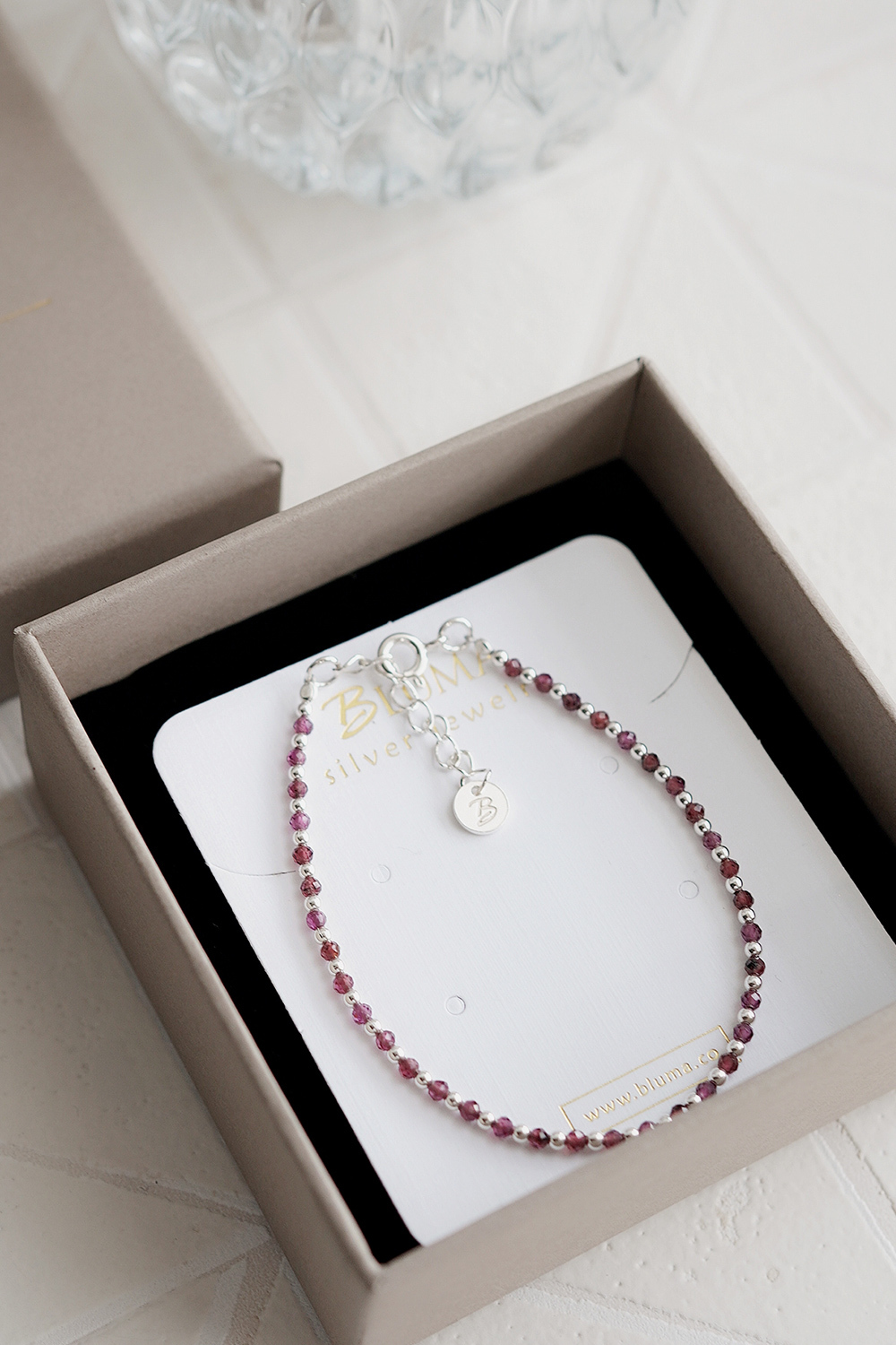 BLUMA玫瑰星夜純銀手鍊(紅石榴石)