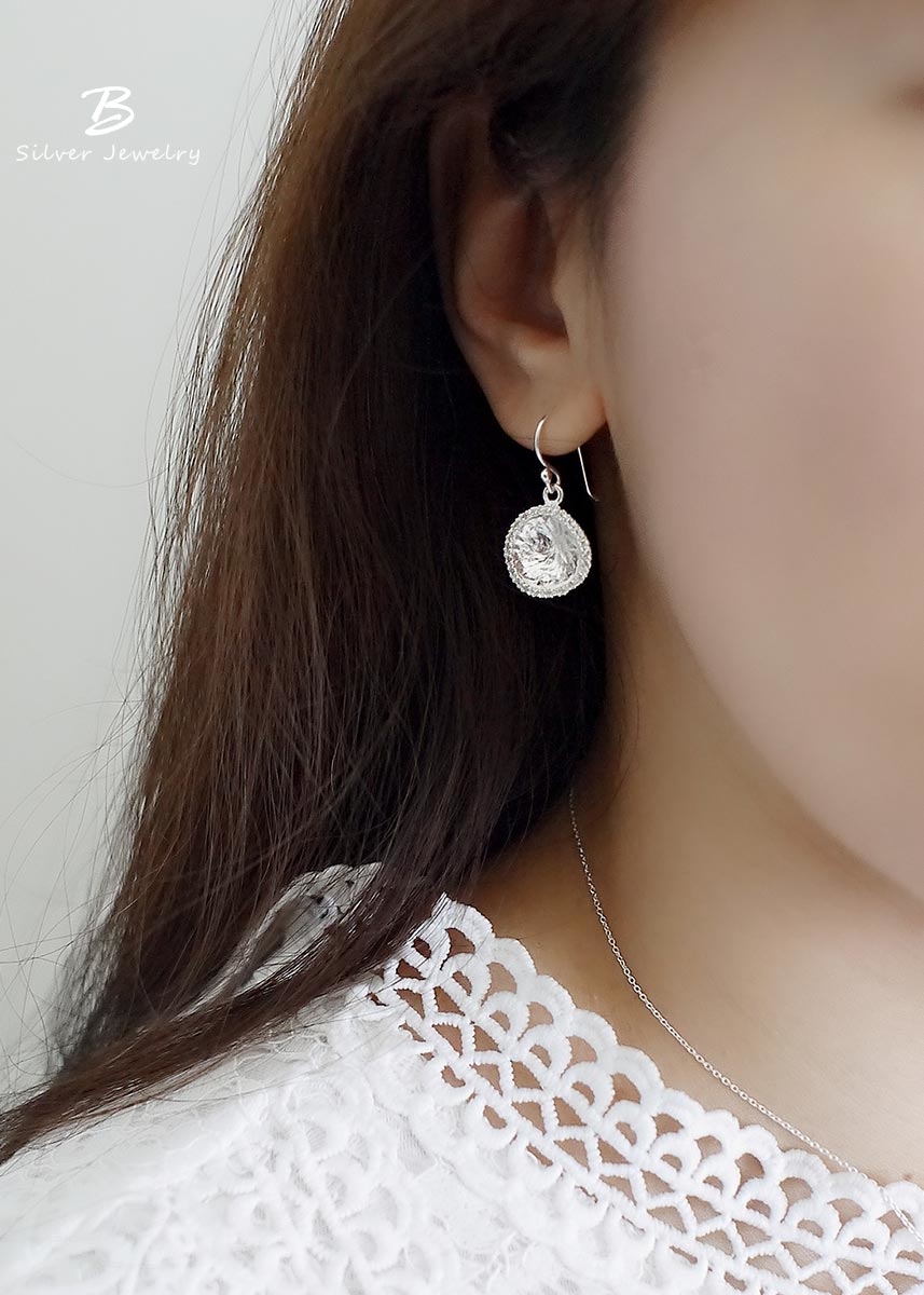 彷彿藝術品般的925純銀耳環,外圈以細密鋯石點綴,在優雅柔和的質感中綻放光芒。