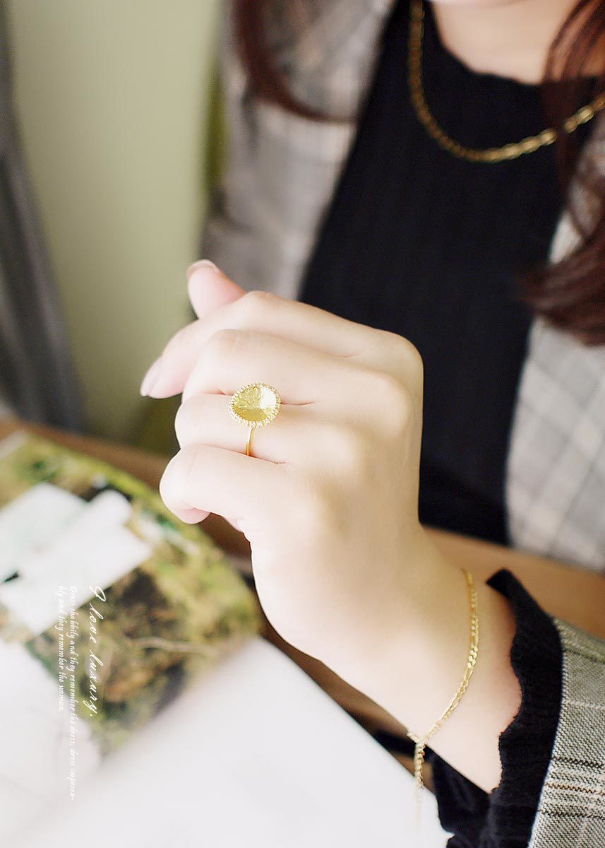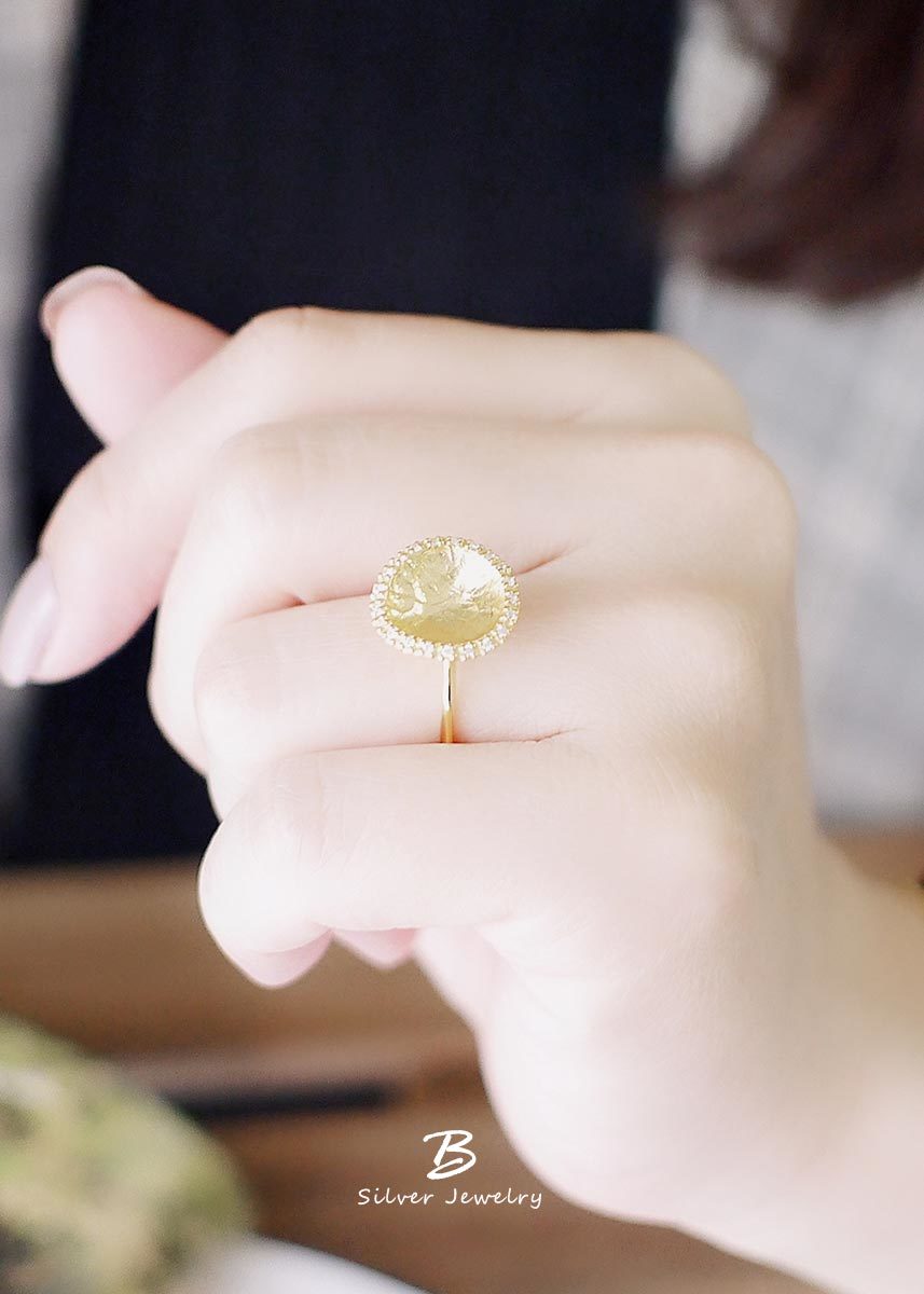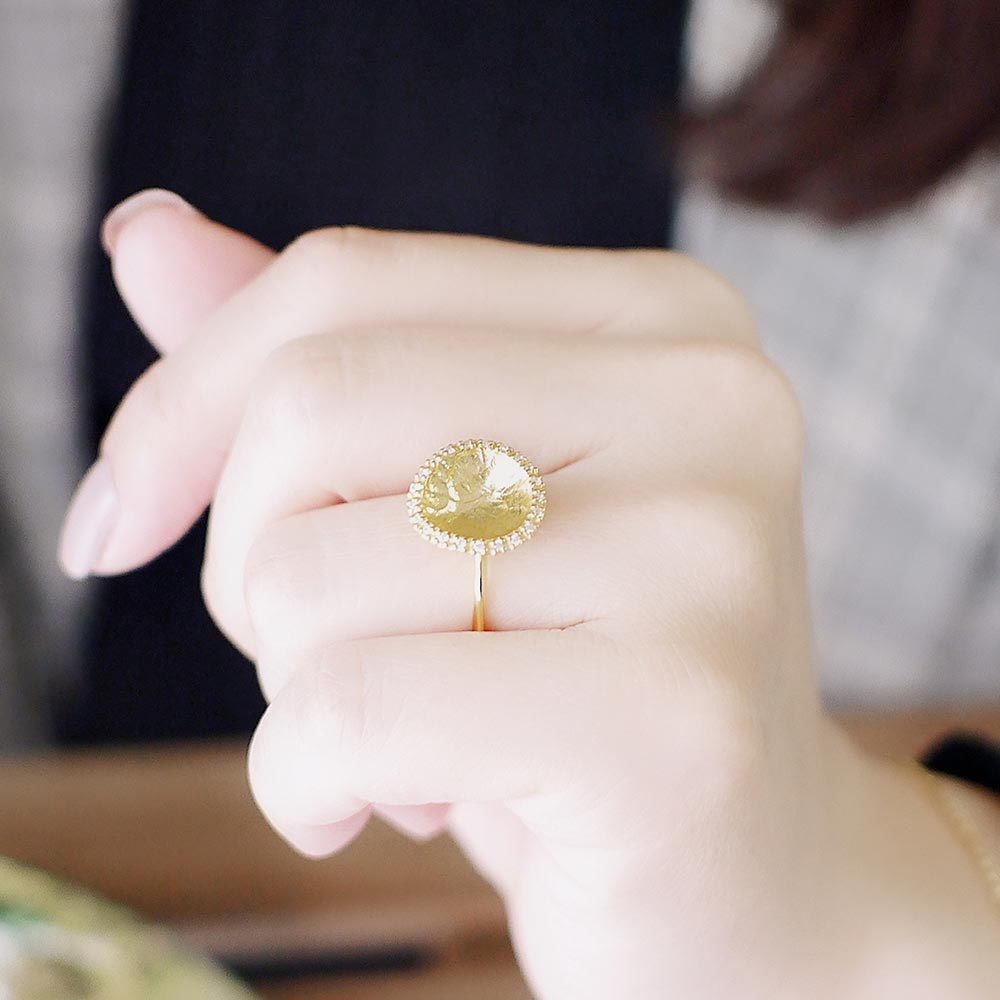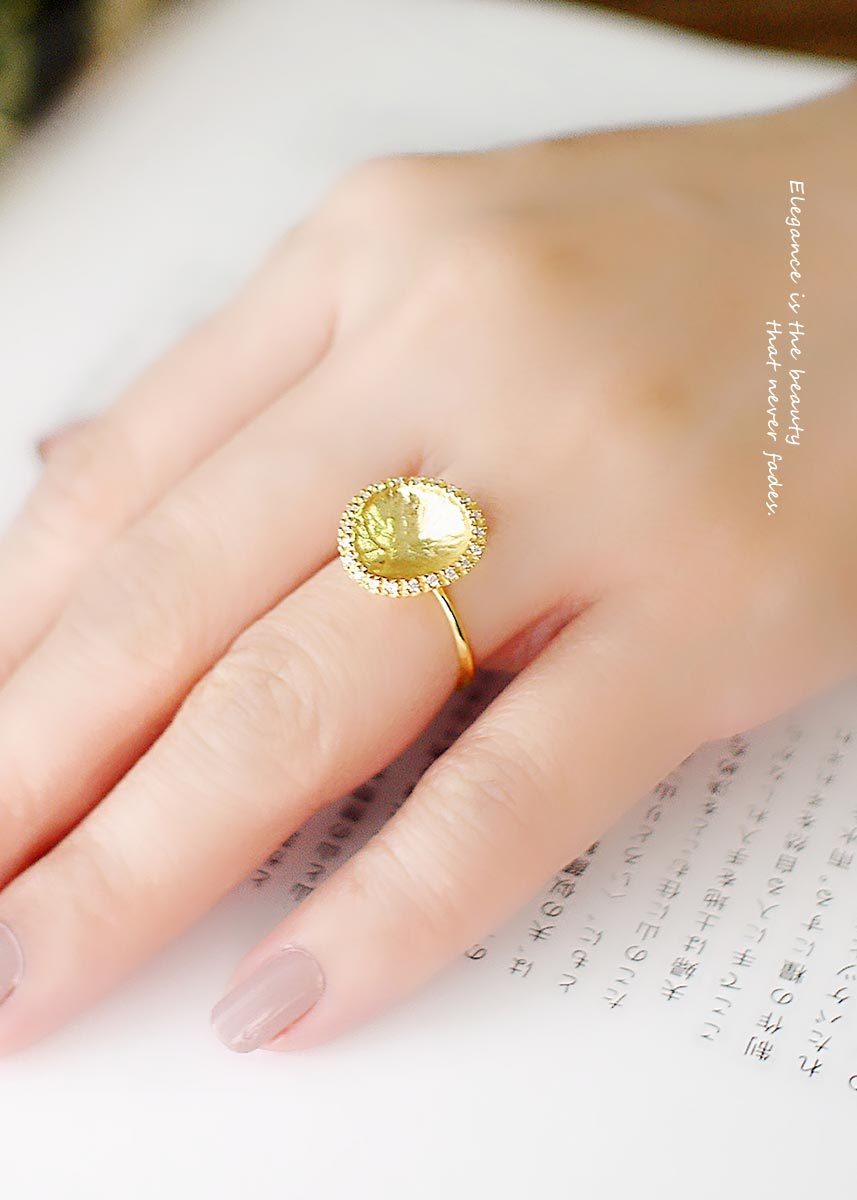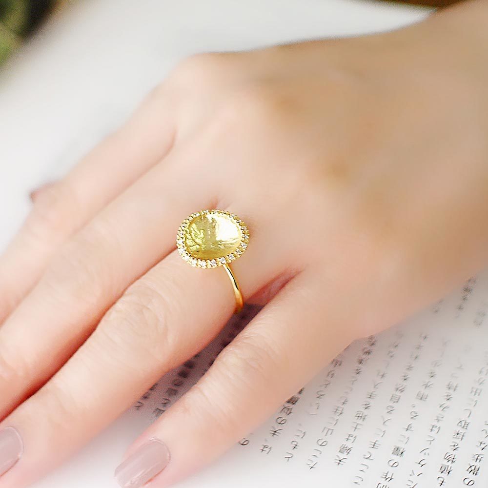 彷彿藝術品般的925純銀鍍18k金戒指,外圈以細密鋯石點綴,在優雅柔和的質感中綻放光芒。