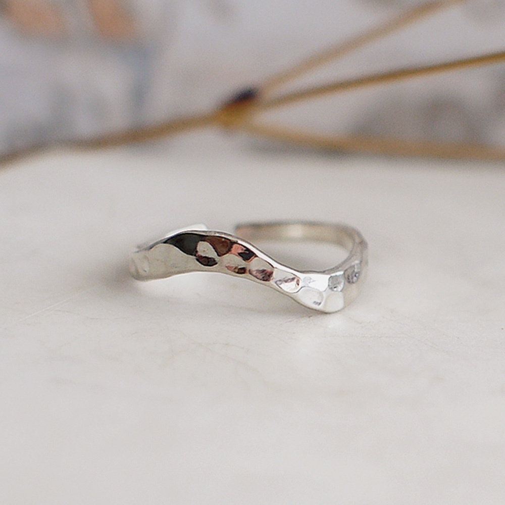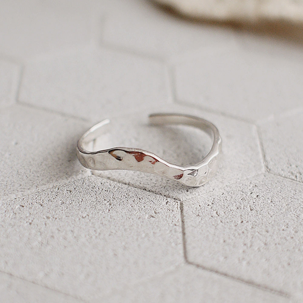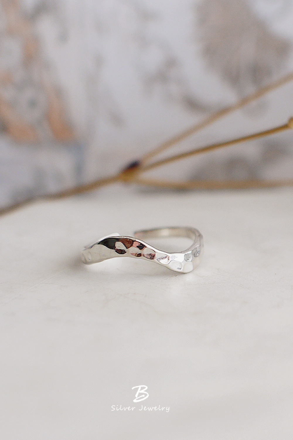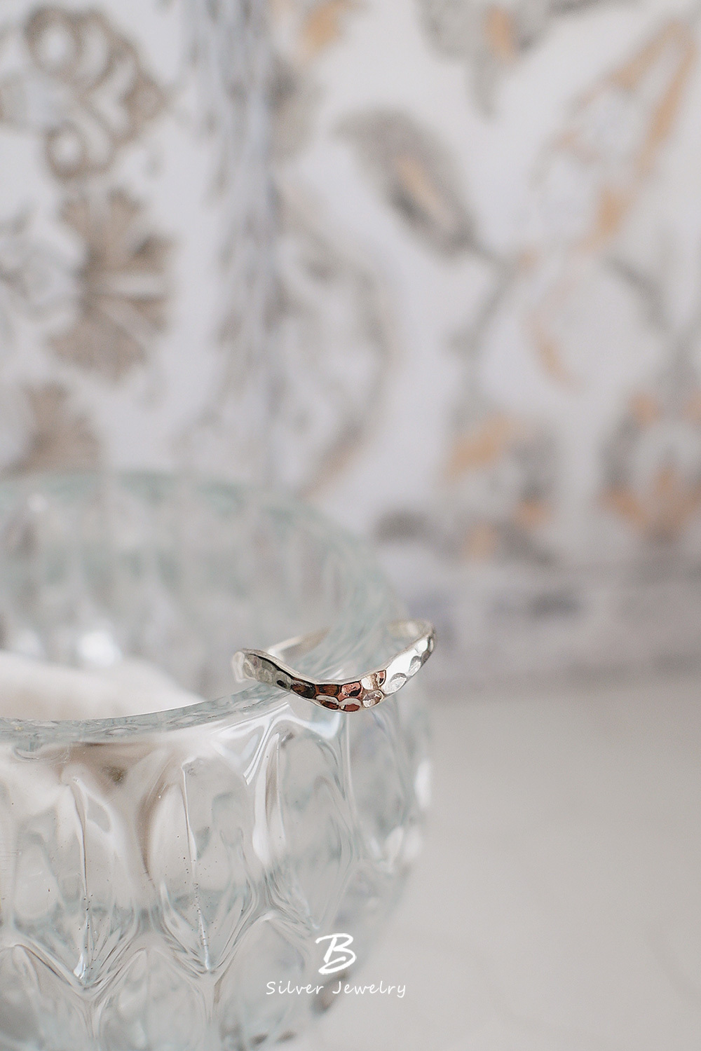925純銀戒指以手工鍛敲,製作立體凹凸質感