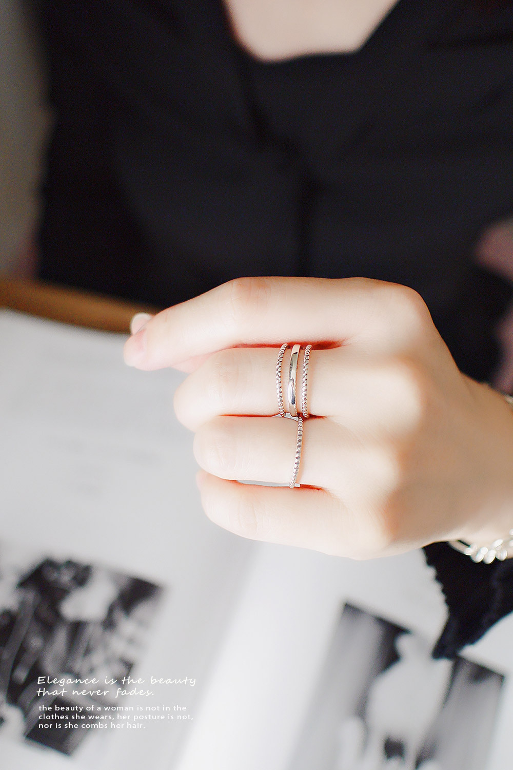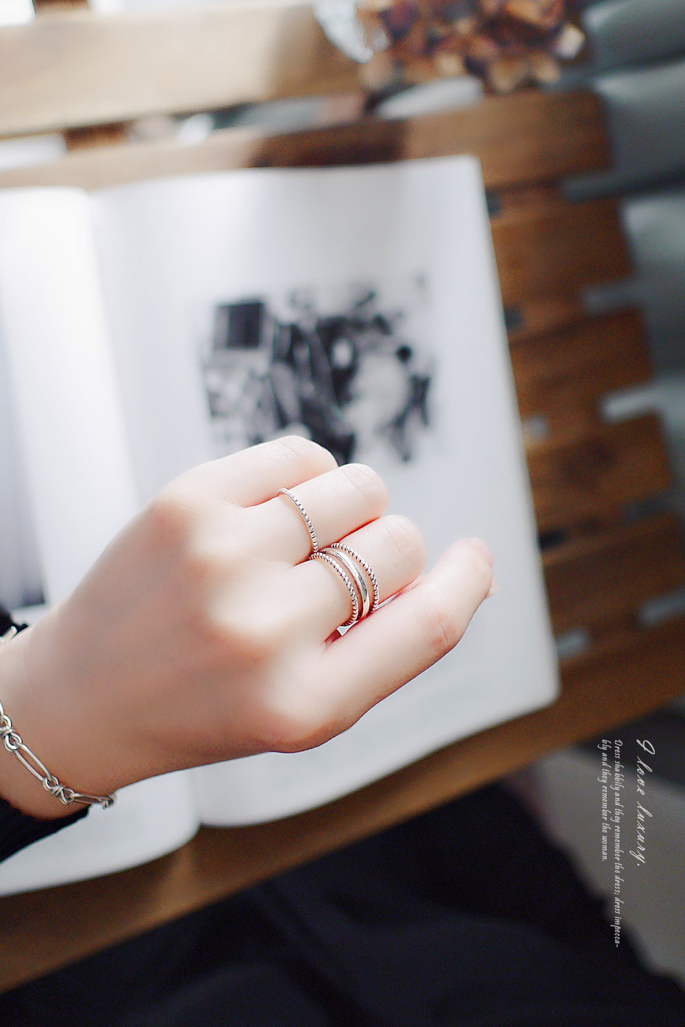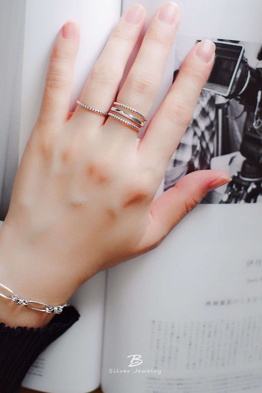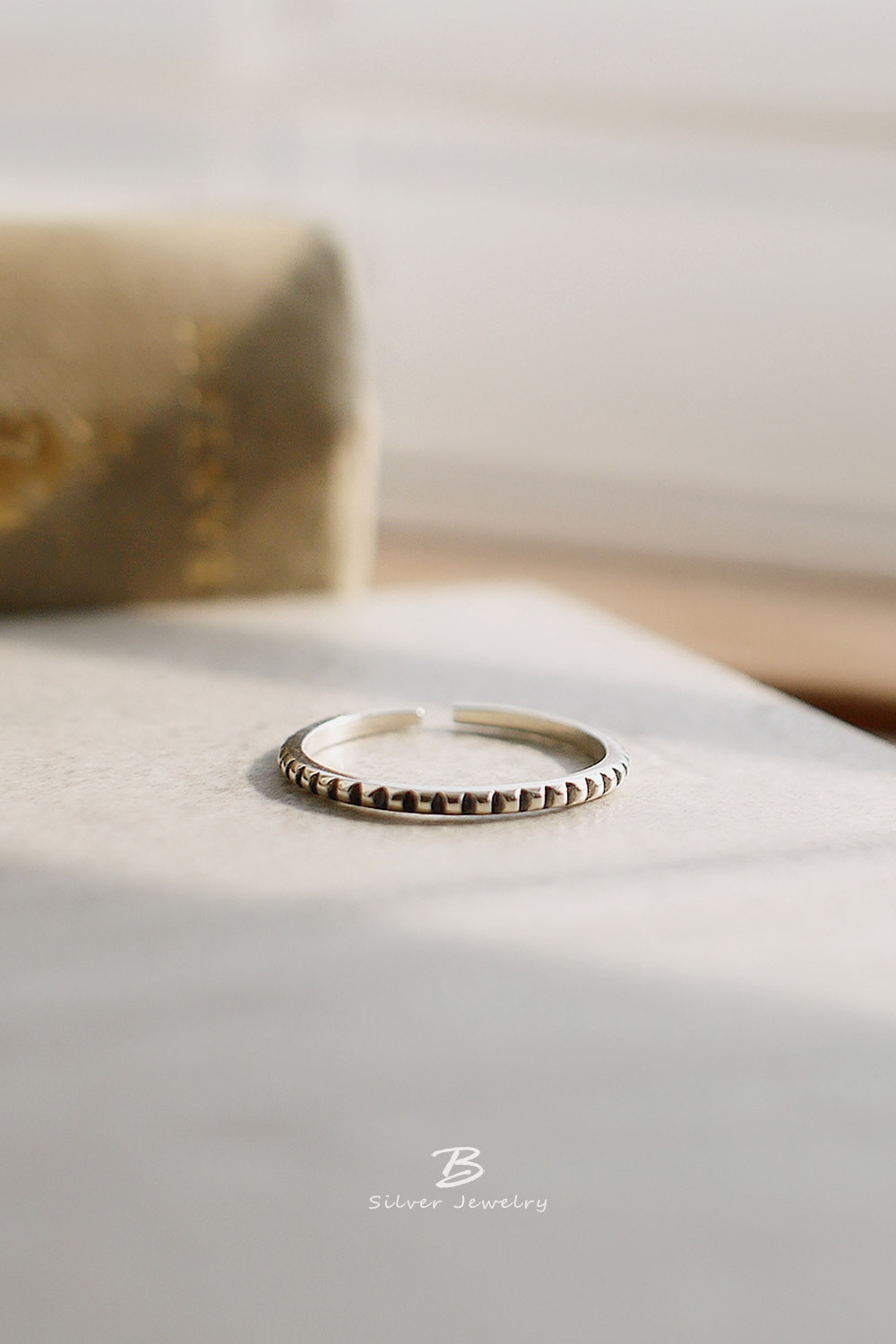 細緻的線條戒指,925純銀仿舊工藝,質感率性自然。