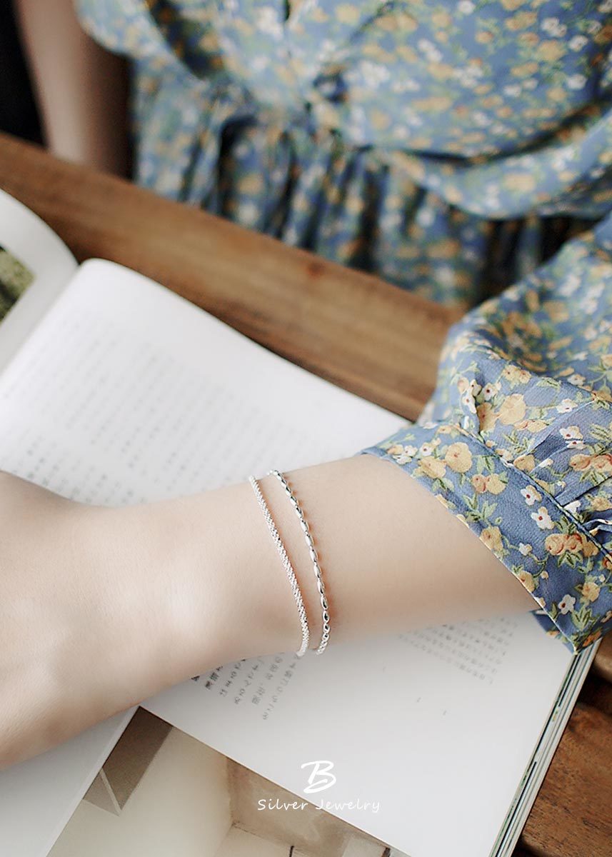 925純銀麻花錬搭配米粒錬,溫潤高雅的色澤,自然閃耀光芒。