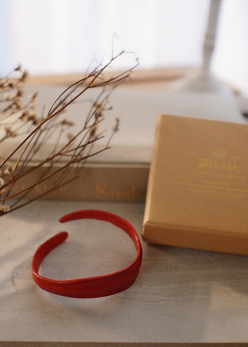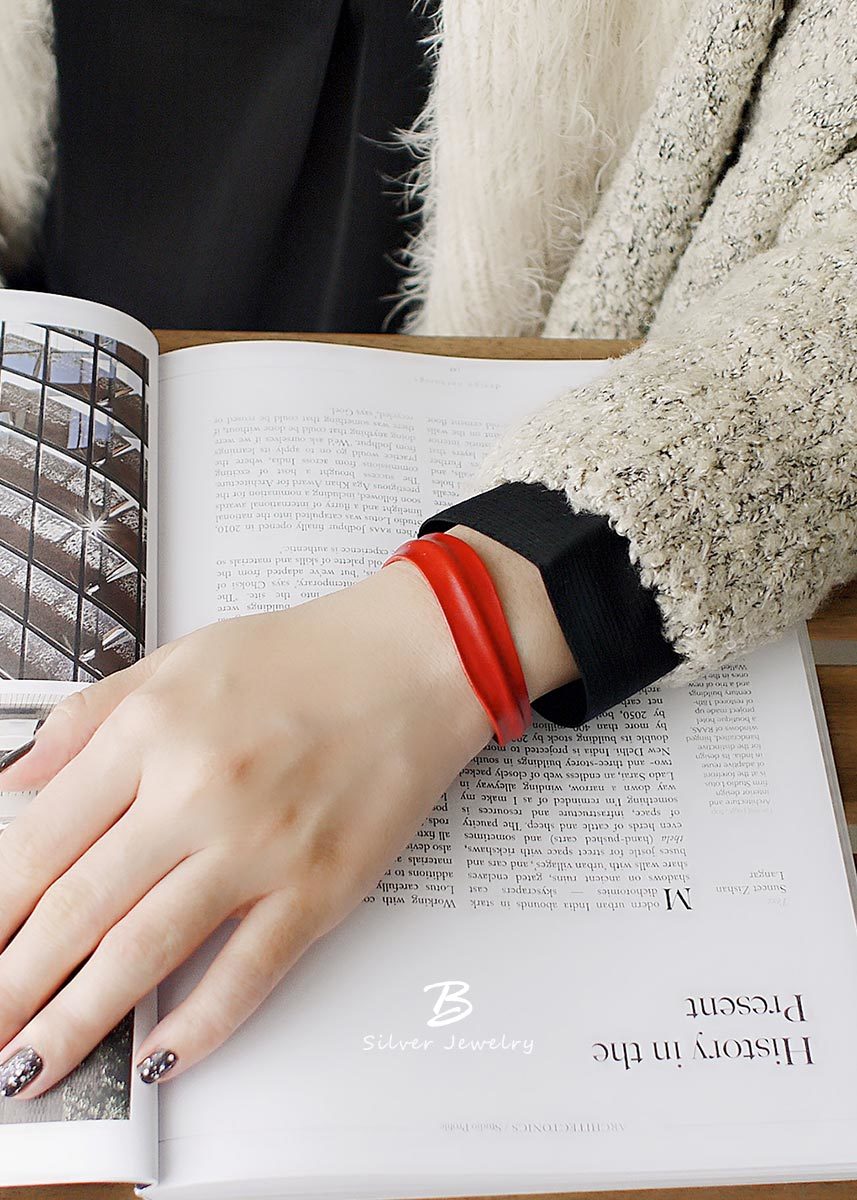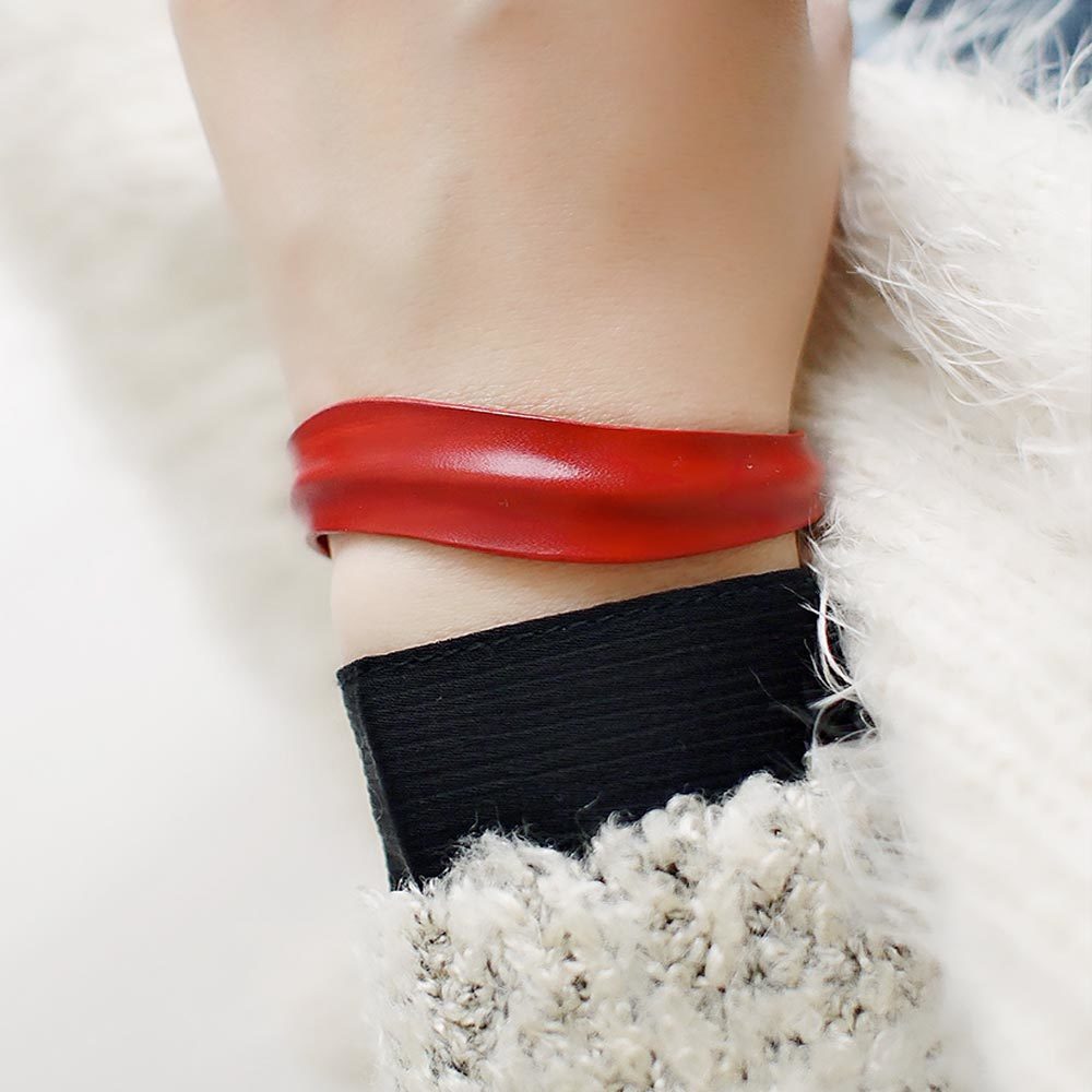 BLUMA波浪手染牛皮手環(暗紅色)