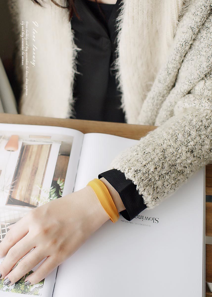 內層以鋁線為框架,輕巧不厚重,很容易彎折佩戴,佩戴後請將開口壓緊貼合手腕。